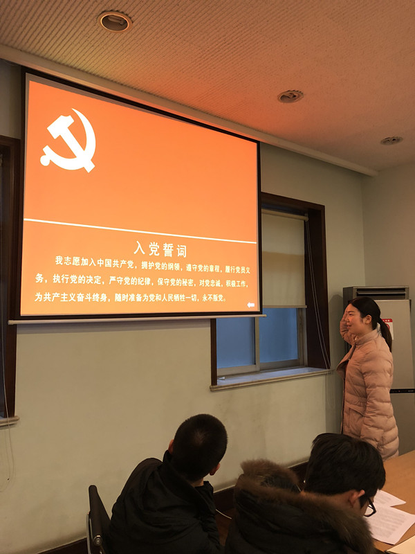 最后發(fā)展對(duì)象宣誓,她高亢激昂,聲音久久回蕩在會(huì)議室里,真正展現(xiàn)出了對(duì)黨的崇高敬意。